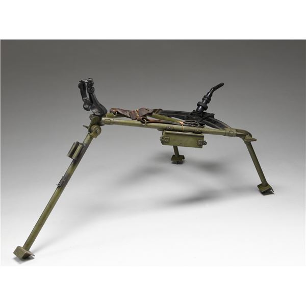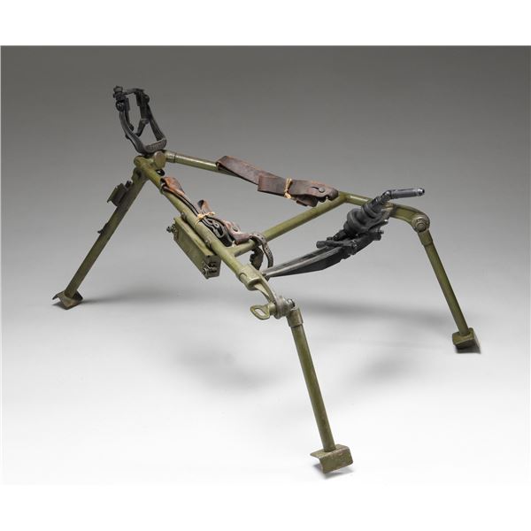 Tripod weights approx. 20" lbs. Approx. 50" in length when set up. Green painted tripod with 2 leather straps & Inclinometer. CONDITION: good green paint finish. Straps are intact but show cracking. PROVENANCE: From the Lifelong Collection of Brian Linde. (02-23926-10/MD). $300-600.