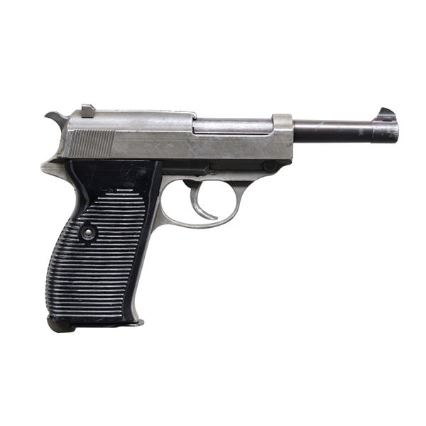 SEMI-AUTOMATIC PISTOL, WITH FN MANUFACTURED SLIDE. Cal. 9mm Luger. S# 5689c. Bbl. 4 7/8". 1 of only 2,150 P.38 semi-automatic pistols mfg. by Mauser with a sub-contracted slide mfg. by Fabrique Nationale originally intended for Walther. The left side of the slide is marked "P.38", followed by Walther's mfg. code and the 2-digit year of mfg. "ac/ 43", and the S#, with Mauser Eagle/WaA135 acceptance proofs and an eagle firing proof marked on the right. Frame and slide exhibit a phosphate finish, with the bbl. exhibiting a blue finish. Frame is mounted with 2-piece grooved black Polymid 6 grips. Dovetailed blade front sight, with U-notch rear sight. All serialized parts are matching and include the frame, slide, bbl., and locking block. MAGS: 1 blued 8-rd., with a Mauser Eagle/WaA135 proof on the spine. CONDITION: very good, with metal components retaining the majority of their original arsenal phosphate and blue finishes, exhibiting some areas of light to mild wear and thinning that show through to gray patina, with some scattered spots of age related discoloration. Bbl. exhibits a few scattered spots of mild pitting. Firing pin indicator retains fair amounts of its original phosphate finish, with the balance exhibiting a gray patina and areas of age related discoloration. Near mirror bore, exhibiting some scattered spots of light to mild surface oxidation and pitting, while retaining well defined rifling throughout. Safety lever decocker functions appropriately when cycled by hand. Grips show some superficial marks from handling and storage, but otherwise remain sturdy and serviceable. A very nice example of a seldom encountered Mauser P.38, assembled with an FN mfg. slide. PROVENANCE: the Estate Collection of Charles Wagner. (25-317/MLW). CURIO. $2,000-3,000.