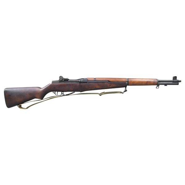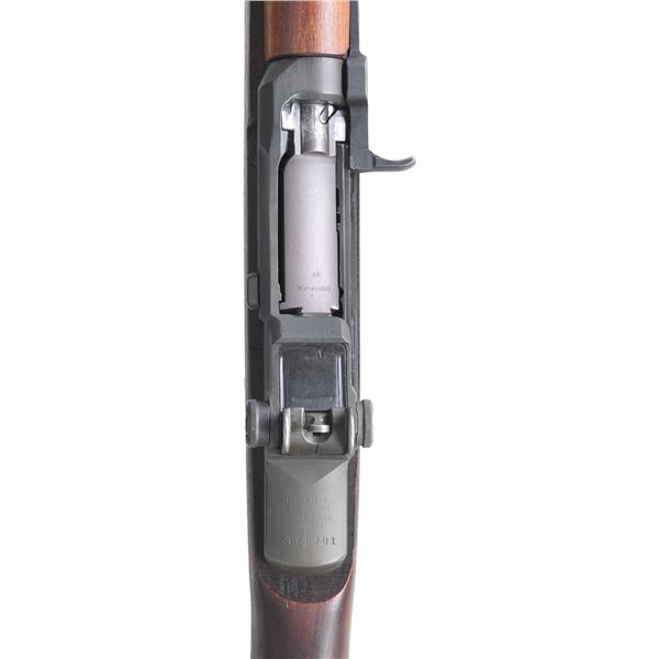 RIFLE. Cal. 30-06. S# 3168701. Bbl. 24". Bbl. is marked on right side "SA / 5-53". Throat gauges: 2.0. Muzzle gauges: 1.0. All visible parts markings are "SA" except the milled trigger guard which is "WRA". T105E1 aperture rear sight. Blade front sight w/ protective ears. Unmarked walnut buttstock. Birch replacement handguards. WWII vintage green web sling. UNATTACHED ACCESSORIES: nickel plated oiler, four cleaning rod sections, cleaning rod tip & folding screwdriver in butt compartment. CONDITION: stock set has light wear, staining & handling marks throughout. Metal retains 75% original parkerized finish w/ thinning & light wear. Very good shiny bore w/ sharp lands. (25-1191/RW). CURIO. $1,000-1,500.