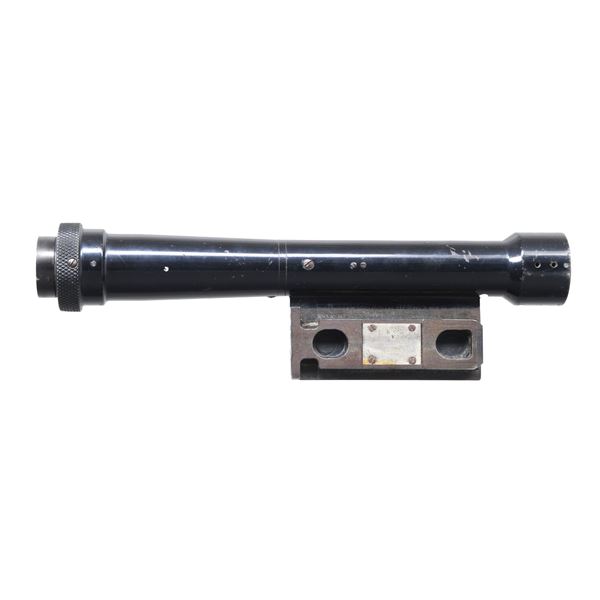 WW2 Japanese Type 99 Arisaka sniper 4x power scope & mount. Maker marking appears to read "IAKATIHO/TOKYO". Scope is numbered "192096". Mount has Type 99 markings. Scope has good mostly clear optics. No rubber eyepiece present. CONDITION: scope & mount show scattered moderate flaking & some oxidation. (02-23952/MJC). $1000-2000.