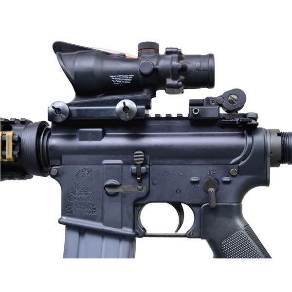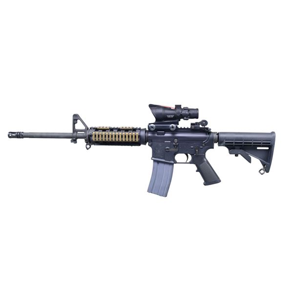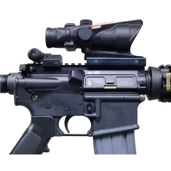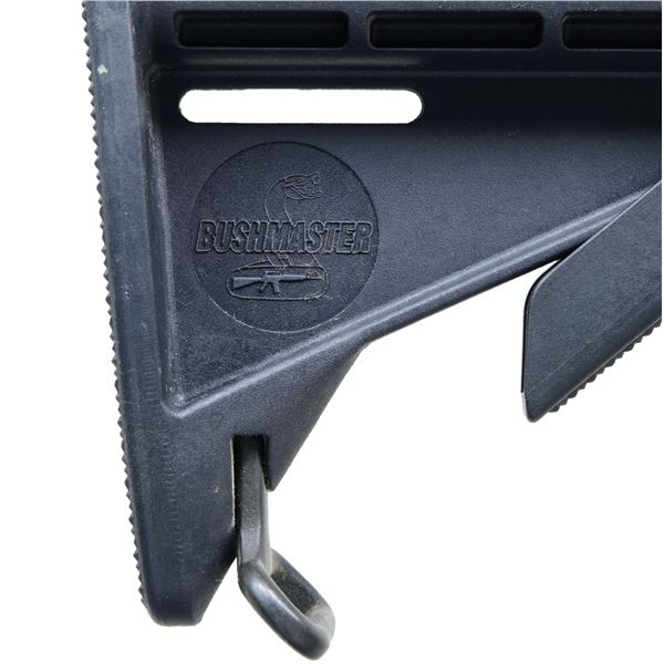 Please note as of 4/9/25 this item description has been updated. Please revisit this description and contact us with any questions. Cal. 5.56 NATO. S# BFI499842. Bbl. 16". A Windham, Maine Bushmaster, Model XM15-E2S. Heavy barrel, w/ threaded muzzle, terminated w/ A2 muzzle brake. Barrel marked; "B MP 5.56 NATO 1/9 HBAR". 6.5" quad rail forend, currently sporting ladder rail covers, retained w/ tapered delta ring. Protected post front sight. Flat top upper receiver w/ round forward assist & brass deflector, currently sporting Trijicon ACOG marked "ACOG 4x32 JN 8:12". Red, illuminated circle w/ range tab reticle. 6 position, collapsible shoulder stock. Sling swivels front & rear. SP1 profile bolt carrier. MAGS: 1 BFI aluminum 30 rd. UNATTACHED ACCESSORIES: Black plastic, foam lined transport case, detachable carry handle w. E2 adjustable integral rear sight, & paperwork. CONDITION: Finish on exposed surfaces of receiver & barrel unblemished. Front handguard demonstrates some light scattered thinning on high spots. Scope glass is clear w/ sharp reticle. Bright bore w/ strong rifling. Fire control mechanism appears to function correctly when cycled by hand. The Trijicon ACOG scope has a broken ocular lens. (25-1617/JZ). MODERN. $1,200-1,800.