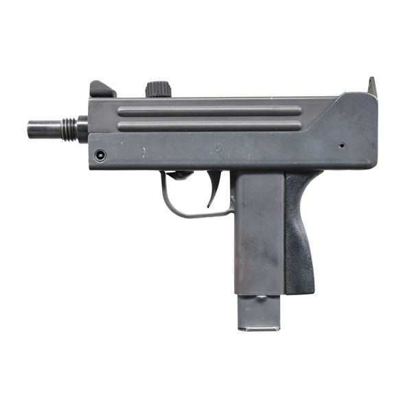 Cal. 380. S# SAP3805129. Bbl. 5". RPB's entry into the "Micro Mac" semiautomatic pistol market was the tiny M11-A1, open bolt pistol, chambered in .380 ACP. It was designated the M11-A1 so as not to be confused w/ their popular 9mm, M11 Submachine Gun. RPB M11-A1 serial numbers range from 380006 - 38011661. The semiautomatic variants were marked w/ the prefix SAP (semi auto pistol) or SAC (Semiautomatic carbine). While the traditional MAC 10 or even the 9mm M-11 were generally considered "boxey or chunky" in design, the M11-A1 was similar in size to the Colt 1911, though not quite as ergonomic in design. The suppressor users enjoyed the M11-A1s since the 380 ammo was already subsonic, just like the 45ACP and provided a very low sound signature when fired. Dark gray parkerized finish. Protected post front sight. Rear peep sight is an oversized hole drilled in the rear receiver extension to coincide w/ the front sight. Slotted charging knob provides an unobstructed view. The action is locked by rotating the charging knob 90-degrees in the closed position. Safety is located on the right side of the receiver, inside the trigger guard. Threaded barrel. MAGS: 1 steel 15 rd. CONDITION: Finish is complete & consistent w/ some light thinning on high spots & in areas of mechanical intervention as well as typical rub marks & drag lines usually associated w/ stacking. Bright bore w/ strong rifling. Fire control mechanism appears to function correctly when cycled by hand. PROVENANCE: Lifelong Collection of Terrance McCarty. (24-97/JZ). MODERN. $500-900.