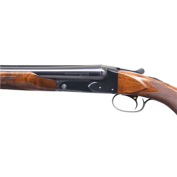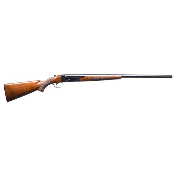 Cal. 12 ga. 2 3/4". S# 13382. Bbls. 28" w/ Imp Cyl. & Full chokes. Steel front bead. SST. Ejectors. Beavertail forearm & uncapped pistol grip stock w/ point pattern hand checkering. LOP: 13 7/8" over original buttplate. DAC: 1 5/8". DAH: 2 1/2". Neutral cast. WEIGHT: 7 lbs, 8.6 oz. CONDITION: fine, retaining over 95% original blue, showing light carry wear w/ flaking on trigger guard. Original wood finish shows a few light scratches & marks. Sound action. Very good bright bores. (25-766/DS). CURIO. $3,000-4,000.