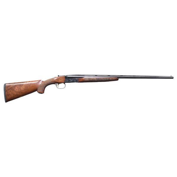 Cal. 28 ga. 2 3/4". S#. CL28-159E. Bbls. 26" vent rib w/ fixed IC & M chokes. White target front sight w/ white mid bead. Blued boxlock action scroll ornamentation w/ a raised gold quail on the floor plate. Gold finished checkered SST., Ejectors. Beavertail forend & steel capped pistol grip stock of satin finished fancy walnut have hand checkering w/ an oval name plate in the toeline. LOP. 14 3/8" over a black Winchester pad. DAC. 1 1/2". DAH. 2 1/2". Neutral cast. WEIGHT: 6 lbs., 4.4 oz. UNATTACHED ACCESORIES: original box containing instruction & hang tag. CONDITION: near new, retaining virtually all original finish. Bright near excellent bores. (25-783/DS). MODERN. $3,000-4,000.