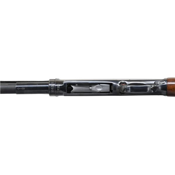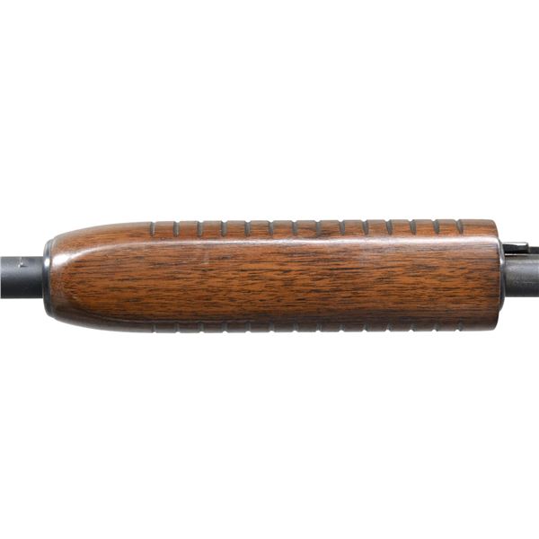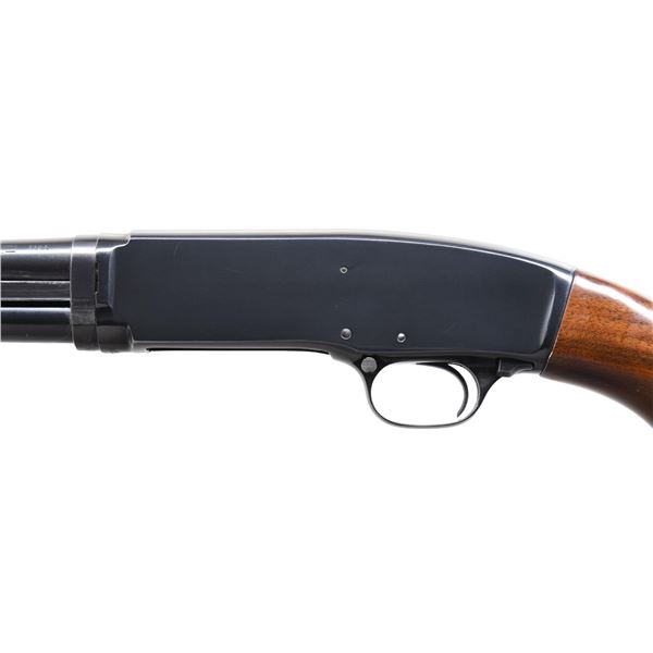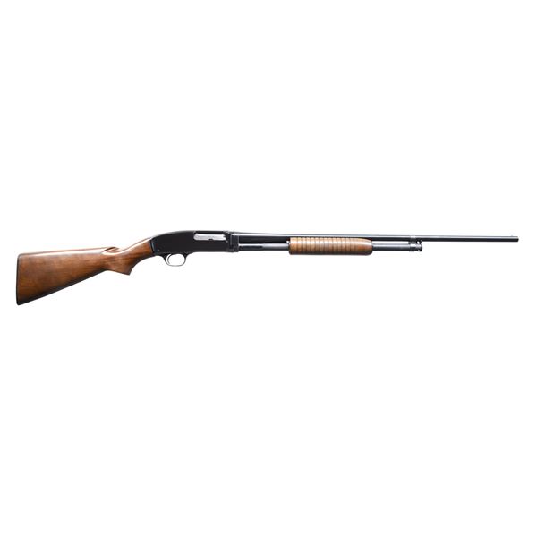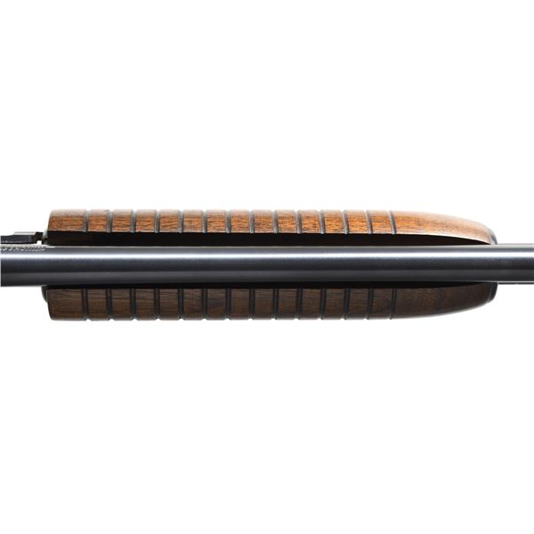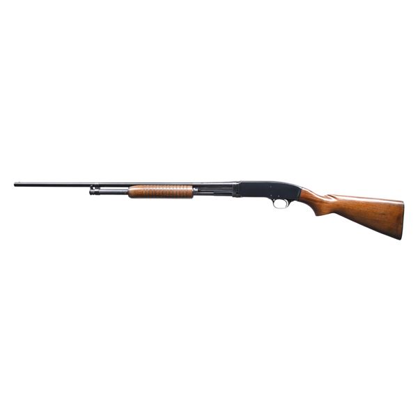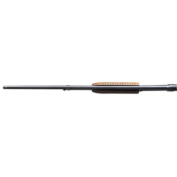 Cal. 410 3". S# 164326. Bbl. 26" plain w/ fixed full choke & steel bead. Flat bottom grooved forearm & pistol grip stock w/ original buttplate. Mfg. 1963. UNATTACHED ACCESSORIES: original box w/ properly numbered yellow label. Box contains instructions, warranty card w/ inserts & packing paper. CONDITION: near excellent. Over 97% blue showing slide & edge wear. Wood finish showing a few small marks. Bright near excellent bore. PROVENANCE: The estate collection of Don "Duck" Combs. (24-2492/DS). CURIO. $3,000-4,500.