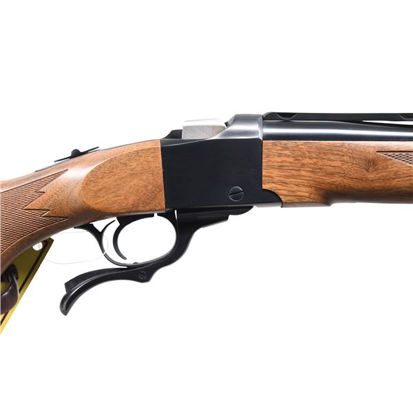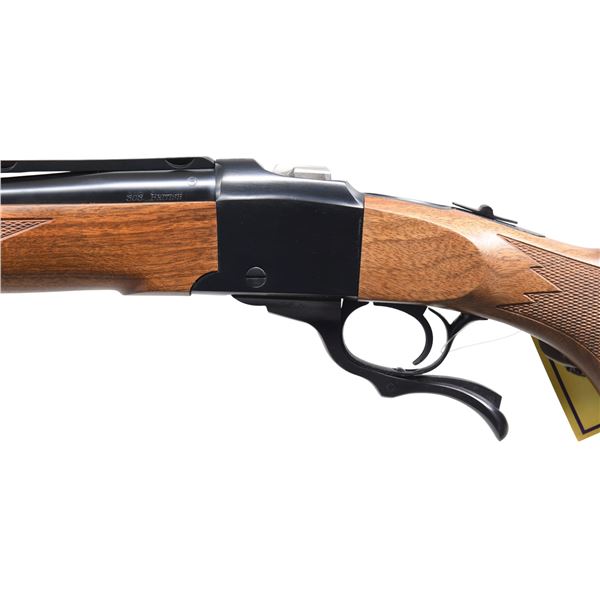 Cal. 303 British. S#. 134-29517. Bbl. 22" w/ ramp mounted bead front & folding leaf rear sight on quarter rib. Alexander Henry forend & capped pistol grip stock w/ cut checkering swivel bases & black pad. UNATTACHED ACCESSORIES: original box containing instruction manual, warranty card, offer papers, safety lock, sling swivels & Ruger rings. CONDITION: as new w/ box. (24-3572/DS). MODERN. $1000-1500.