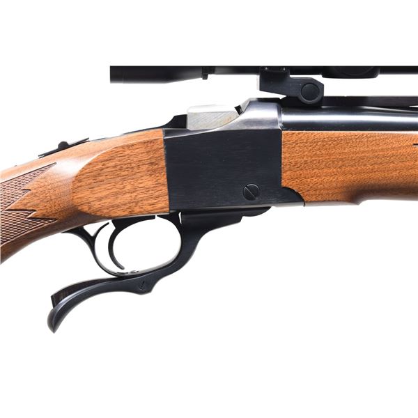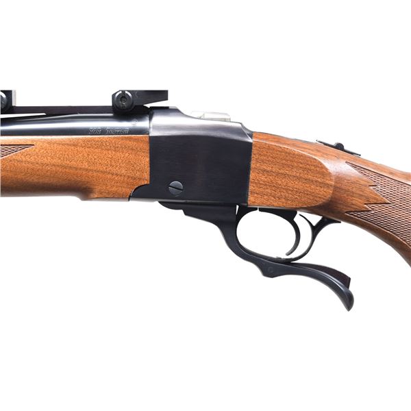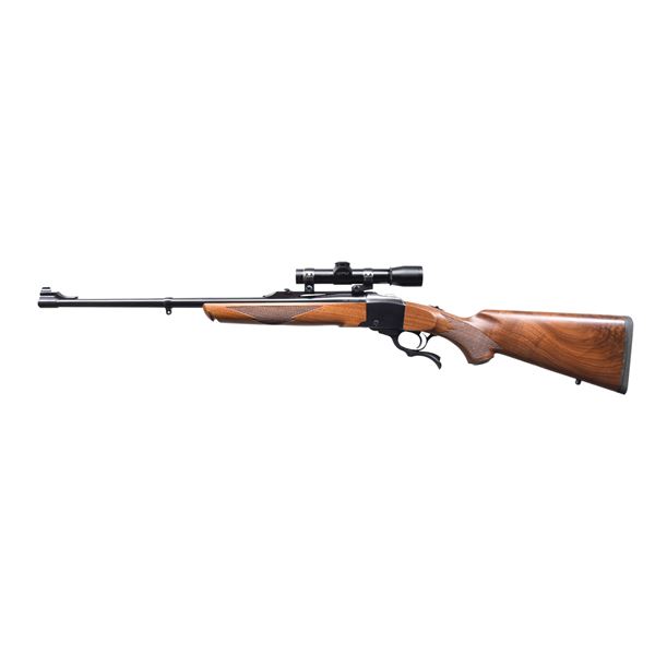 Cal. 303 British. S# 134-32132. Bbl. 22" round. Ramp mounted bead front sight w/ quarter rib mounted folding leaf rear sight. Leopold M8, 2.5x20 matte finished scope w/ heavy duplex reticle on Weaver mounts. Alexander Henry forearm & steel capped pistol grip walnut stock w/ cut checkering, swivel bases & solid black pad. CONDITION: near excellent retaining nearly all finish. Bright near excellent bore. Scope has clear optics. PROVENANCE: Lifelong Collection of Bill Peterken. (24-6208/DS). MODERN. $800-1,200.