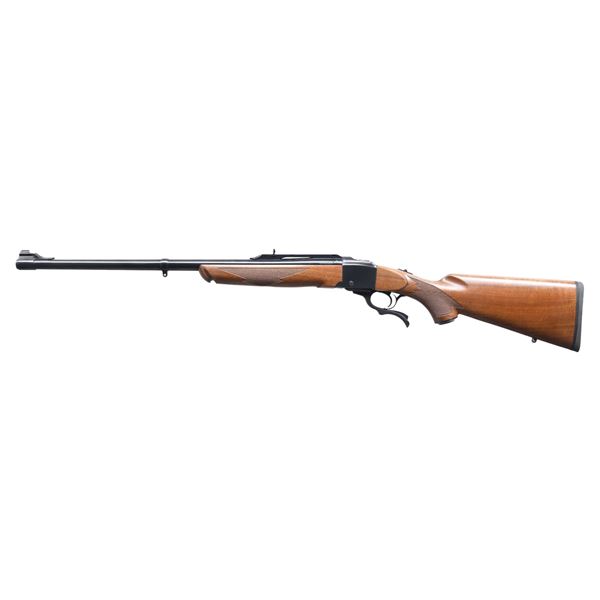 Cal. 450/400 N.E. 3". S# 134-39669. Bbl. 24". Ramp mounted bead front sight w/ folding leaf rear sight on quarter rib. Alexander Henry forearm w/ pistol grip walnut stock. Features include cut checkering, swivel bases, steel grip cap & solid black pad. UNATTACHED ACCESSORIES: original box containing Ruger rings, sling swivels, safety lock, instruction manual, warranty card & special offer cards. CONDITION: as new w/ box. (23-6822/DS). MODERN. $1,200-1,800.