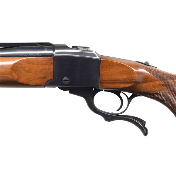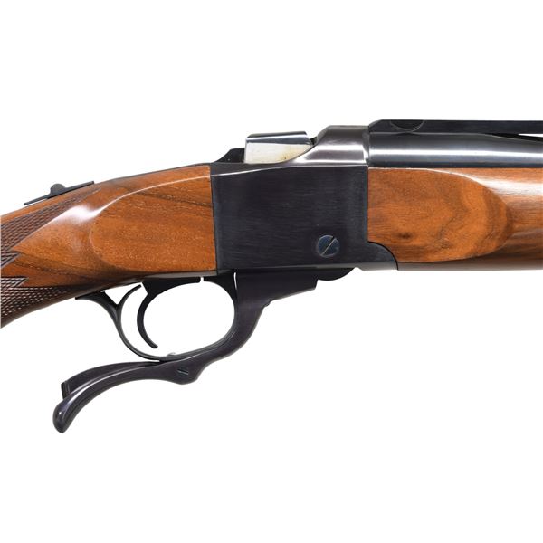 Cal. 6.5 Rem Mag. S# 130-13057. Bbl. 26" sightless w/ quarter rib. Semi-beavertail forearm & pistol grip stock of fancy walnut. Features include steel grip cap, solid red pad, cut checkering & swivel bases. CONDITION: over 98% blue. Very good original wood finish showing small marks. Near excellent bore. (23-6532/DS). MODERN. $1,000-1,500.
