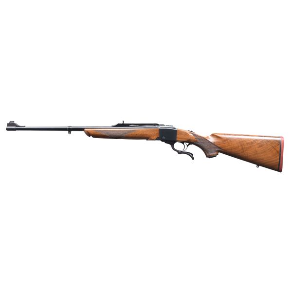 Cal. 7x57. S# 131-15065. Bbl. 22". Ramp mounted bead front sight w/ folding leaf rear sight on quarter rib. Alexander Henry forearm & steel capped pistol grip stock of fancy walnut. Features include cut checkering, swivel bases & solid red pad. UNATTACHED ACCESSORIES: original box containing owner's manual, warranty card, special offer papers & Ruger rings. CONDITION: as new w/ box. (23-6744/DS). MODERN. $1,000-1,500.