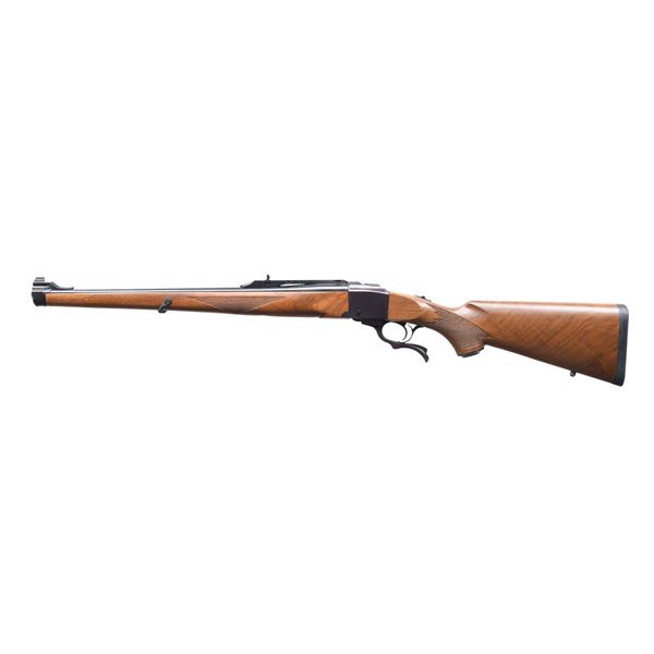 Cal. 7x57. S# 133-36762. Bbl. 20". Ramp mounted bead front sight w/ folding leaf rear sight on quarter rib. Full length forearm & steel capped pistol grip walnut stock w/ cut checkering & solid black pad. Forearm has looped type sling swivel w/ swivel base on stock. UNATTACHED ACCESSORIES: original box. CONDITION: as new w/ box. (23-6842/DS). MODERN. $1,000-1,500.