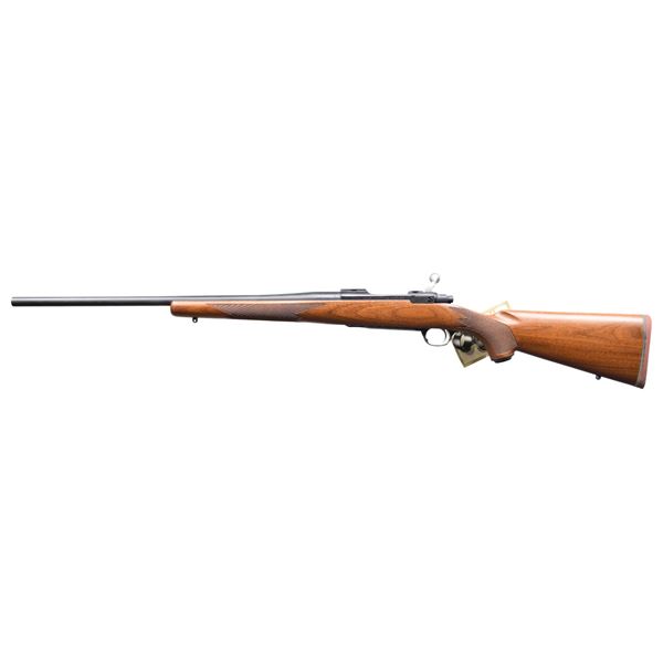 Cal. 358 Win. S# 710-38193. Bbl. 20" w/o sights. Action features 3 position safety & bases for Ruger rings. Matte blue finish. Checkered walnut stock w/ red pad. UNATTACHED ACCESSORIES: original box containing instruction manual, warranty card, offer papers, Ruger rings, sling swivels & safety lock. CONDITION: as new w/ box. (24-3755/DS). MODERN. $500-700.