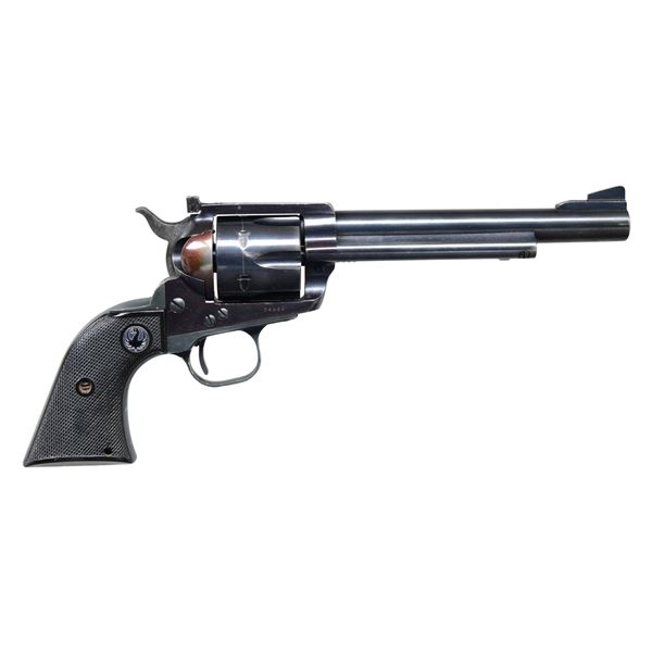 Please note as of 4/10/25 this item description has been updated. Please revisit this description and contact us with any questions. Cal. .357 Mag. S# 34949. Bbl 6 1/2" with ramped serrated blade front sight; factory frame mounted adjustable rear. Mfg. 1961 (1955-1962 for all Flat Tops) with steel full slot ejector housing, XR3 alloy grip frame having checkered hard rubber grips with black eagle medallions and original lockwork without factory safety update. CONDITION: very good with plum hued loading gate. Near excellent bore. Good appearing grips with holes completely through for locating pin plus small area of chips at lower front of right grip. (23-6259). CURIO. $350-500.