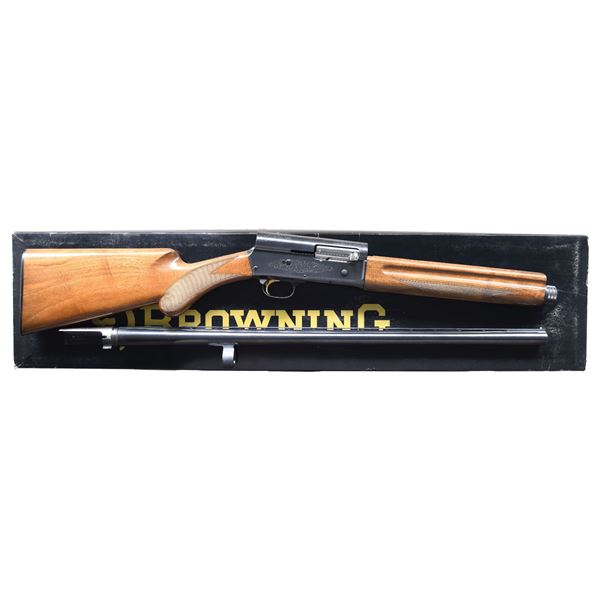 Cal. 16 ga. 2 3/4". S# 16076NY221. Bbl. 26" vent rib w/ Invector chokes. IC, Mod & Full choke tubes included. Action has grade one scroll ornamentation. Blue finish w/ gold finished trigger. Forearm & round knob walnut stock w/ cut checkering, gloss finish & original buttplate. Mfg. in Japan. UNATTACHED ACCESSORIES: black foam-lined box containing instructions, hang-tag, purchase card, choke wrench & spare chokes. CONDITION: near new, retaining virtually all original finish. Bright near excellent bore. (25-928/DS). MODERN. $2,000-2,700.