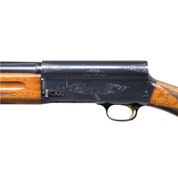 Cal. 16 ga. 2 3/4" S# 1/ 12209 64. Bbl. 28" vent rib w/ fixed Mod choke. Recoil operated shotgun , mfg. in Belgium. Action has grade 1 scroll engraving. Blue finish. Gold plated trigger. Walnut forend & round knob stock have hand checkering, sling swivels & original butt plate. CONDITION. 90% lightly worn blue shows some handling marks. Original wood finish shows moderate finish wear & checking w/ scattered handling marks. Very good bore. (25-925/DS). MODERN. $2000-2600.