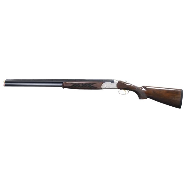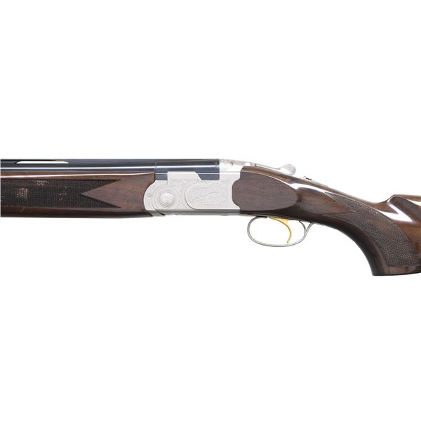 Cal. 12 Ga., 3". S# U45354B (BZ = 2005). VR 28" barrels with alloy front bead. Seminole IC & Skeet choke tubes. Nickel finished receiver with scroll engraving. Gold plated SST & ejectors. Checkered walnut schnabel tipped forearm & pistol grip buttstock. LOP: 15" to black pad. DAC: 1 1/2". DAH: 2". Stock is slightly cast off. WEIGHT: 7.5 lbs. CONDITION: near excellent blue & nickel finish. Very good wood finish shows areas of flattened diamond in left side forearm checkering, some flattening of diamond in right side forearm checkering along with occasional handing marks in buttstock. Shiny bores with light fouling. (24-6752/MD). MODERN. $1,000-1,500.