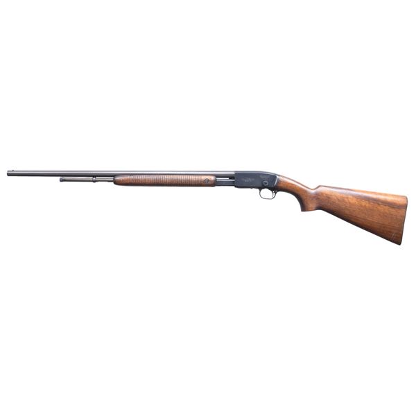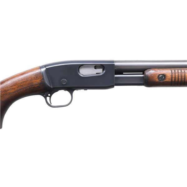 Cal. 22 S,L,LR. S# 30180. Bbl. 23" round w/ bead sight marked "SMOOTH BORE". Bore is stepped measuring .390 at muzzle. Flat bottom grooved forearm & pistol grip walnut stock w/ checkered aluminum buttplate. CONDITION: 0ver 90% lightly faded blue. Sanded & refinished wood shows handling marks. Very good bore. PROVENANCE: The estate collection of Don "Duck" Combs. (24-2539/DS). CURIO. $1,000-1,500