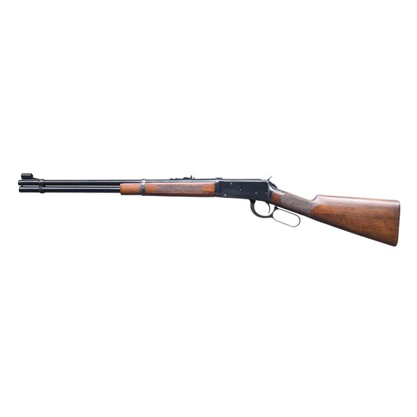 Cal. 30 WCF. S# 1570280. Bbl. 20". Hooded ramp bead front sight w/ Marbles replacement flat top sporting rear sight. Full length mag. Blue finish. Band fastened carbine forearm & straight grip stock w/ checkered steel buttplate have added hand checkering. Mfg. 1949. CONDITION: 95% original blue. Stocks have lightly worn original finish showing small marks. Sound mechanics. Bright near excellent bore. (25-759/DS). CURIO. $500-800.