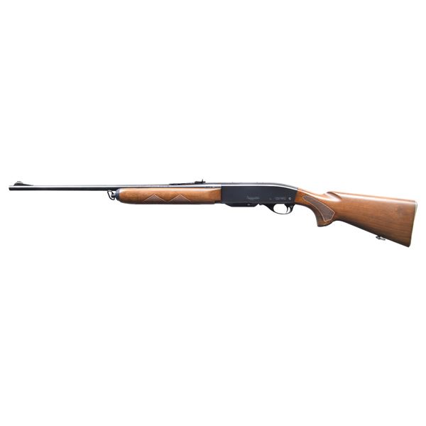 Cal. 30-06. S# 87671. Bbl. 22" w/ ramp mounted bead front sight & sporting rear sight. Blue finish. Forearm & capped pistol grip stock feature cut checkering, sling swivels & aluminum buttplate. Mfg. 1955-1959. MAGS: 1 detachable box mag. UNATTACHED ACCESSORIES: original box containing instruction folder. End flap is marked "SPECIAL ORDER". Box shows light staining & tattering. CONDITION: near excellent, appears unfired. Over 98% original blue. Very good original stock finish shows a few small handling marks. Bright near excellent bore. (25-564/DS). CURIO. $1,500-2,250.