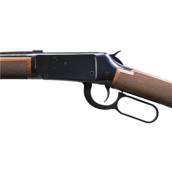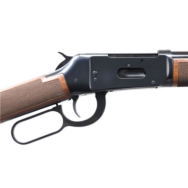 Cal. 307 Win. S# AE20380. Bbl. 20" round. Hooded ramp bead front sight w/ folding leaf rear sight. Full length tubular mag. Action is drilled for scope mounts. Blue finish. Band fastened walnut forearm. Monte Carlo stock feature cut checkering & solid red pad. UNATTACHED ACCESSORIES: original box containing owner's manual, warranty card, hang-tag, sling swivels, scope bases & rings. CONDITION: as new in box. (24-6309/DS). MODERN. $1,000-1,400.
