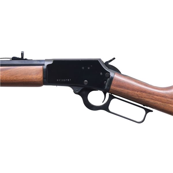 Cal. 44 Rem Mag (or 44 special). S# 99123757. Bbl. 24" octagon. Bead front sight w/ sporting rear sight. Full length tubular mag. Crossbolt safety. Blue finish. Walnut forearm & straight grip stock w/ plastic buttplate. UNATTACHED ACCESSORIES: original foam-lined box containing owner's manual packet, hammer extension & safety lock. CONDITION: as new w/ box. (24-3301/DS). MODERN. $800-1,200.