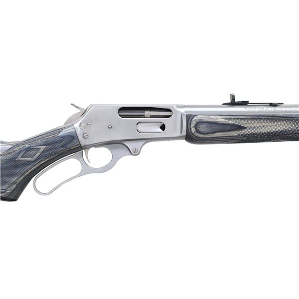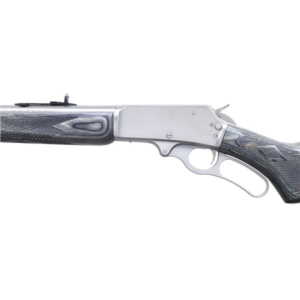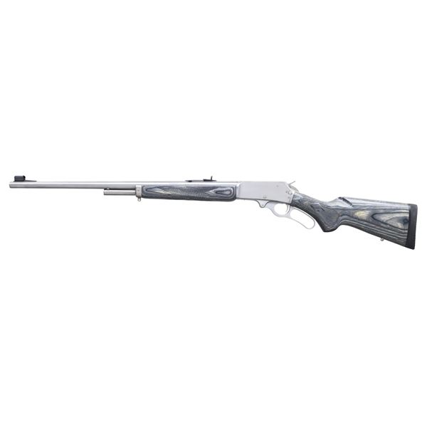 Cal. 450 Marlin. S#. 93202954. Bbl. 24" round w/ micro groove rifling. half length tubular mag. Cross bolt safety & grooved bolt body. Stainless steel construction. Laminated stock & forend w/ cut checkering, plastic grip cap, solid black pad & swivel bases. UNATTACHED ACC: original box containing owners manual packet, scope mt. shims & safety lock. CONDITION: as new in box. (24-3631/DS. MODERN. $800-1200.