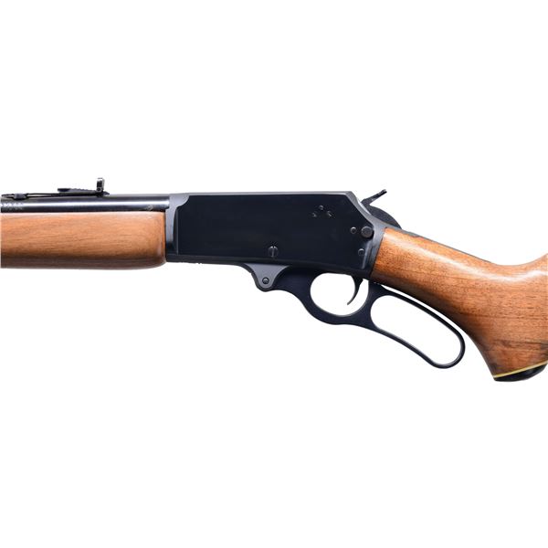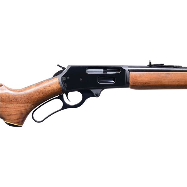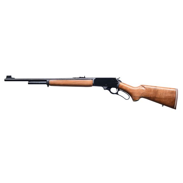 Cal. 356 Win. S# 15012136. Bbl. 20" round. Hooded ramp white bead front sight w/ sporting rear sight. 5 shot 2/3 length tubular mag. Action has cross bolt safety. Walnut forend & capped pistol grip walnut stock w/ rifle pad & swivel bases. Total of 2441 mfg. 1985-1986. UNATTACHED ACCESSORIES: original box containing hammer extension. CONDITION: as new in box. (24-6322/DS). MODERN. $1,000-1,500.