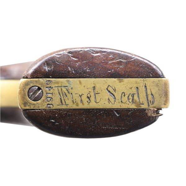 After the fight, Ross, a future Confederate General, Texas Governor and the Father of Texas A&M, field inscribed the gun's back strap, carved "First Scalp" in the butt and presented it to C.R. Gray. (Claredon Ross Gray is listed on Ross's roster of Texas Rangers who took part in the raid). Ross recounted this in his January 4, 1861 after-battle report to Governor Sam Houston, "I made a proposition to present the first man who should kill and scalp an Indian with a Colt's revolver and after the battle, it was awarded to "C.R.Gray".