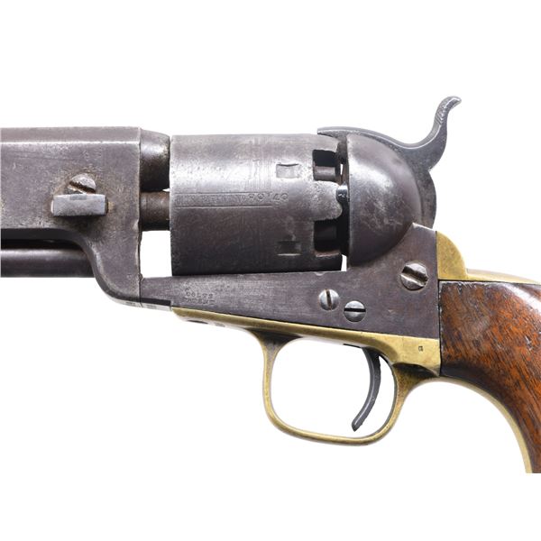 PROVENANCE: Lawrence Sullivan “Sul” Ross (1838-1898) 22 year-old seasoned ranger commanding the Texas rangers promising a reward of his pistol and mentioned the recipient in Jan. 4, 1861 report to Governor Sam Houston. Clarendon R. Gray would receive this pistol from Sul Ross, nicely field inscribed. Gray’s discharge card from the rangers show a pistol valued at $30 February 4, 1861. Gray may have carried this revolver in Civil War as part of 1st Texas cavalry till discharge in 1865 in San Antonio. Gray died in 1877. Revolver was purchased by John Knox (1881-1964) from teenager Herbert Hester (1906-1984) in 1913 who obtained it from John C. Parker (1862-1952), Giddings, TX. Knox traded it to renowned TX collector/historian Gaines de Graffenried in 1955. De Graffenreid, only knowing that it had some historical value, displayed revolver as part of his Texas arms at the Texas Ranger Hall of Fame Museum in Waco for three decades and it was published in “TEXAS COLLECTOR, GAINES DE GRAFFENRIED, 1987 detailing its impeccable provenance. After Gaines death, his collection was sold at Christies June 19, 2001. (01-26165/JS). ANTIQUE. $80,000-160,000.