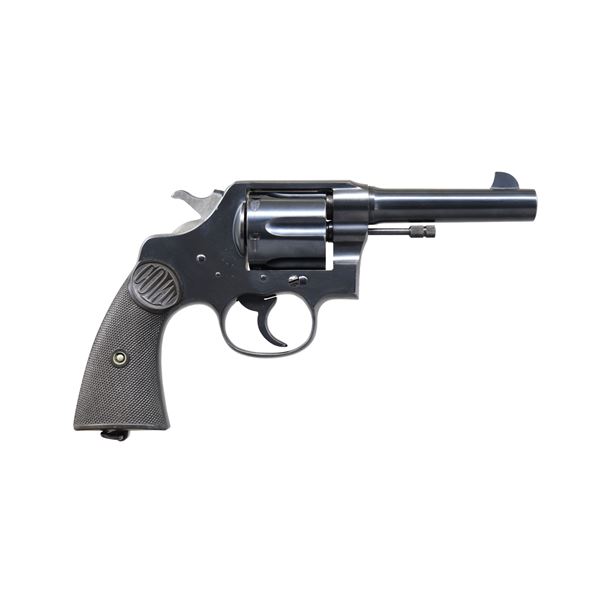 Cal. 45 Colt. S# 327774. Bbl. 4 1/2". Six shot fluted cyl. 2 piece checkered hard rubber grips. Lanyard ring at butt. Mfg. 1928. CONDITION: over 90% original blue. Very good grips. Very good bright bore. (24-5650/DS). CURIO. $1,000-1,500.