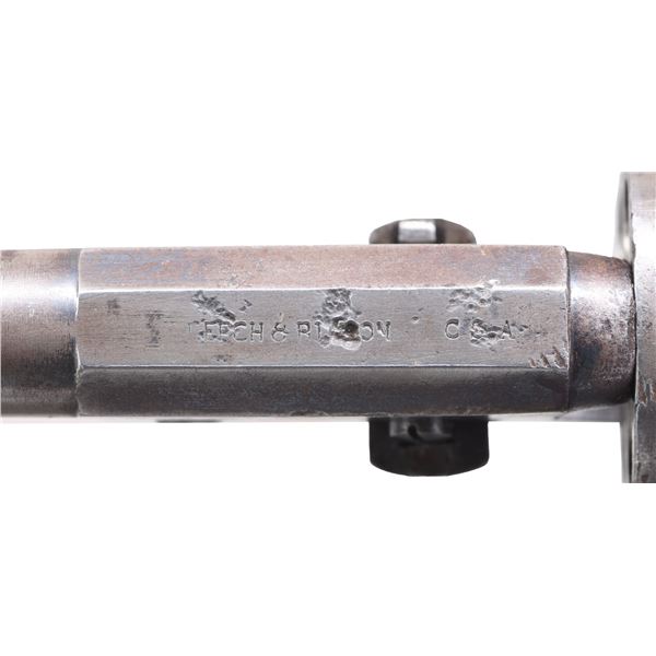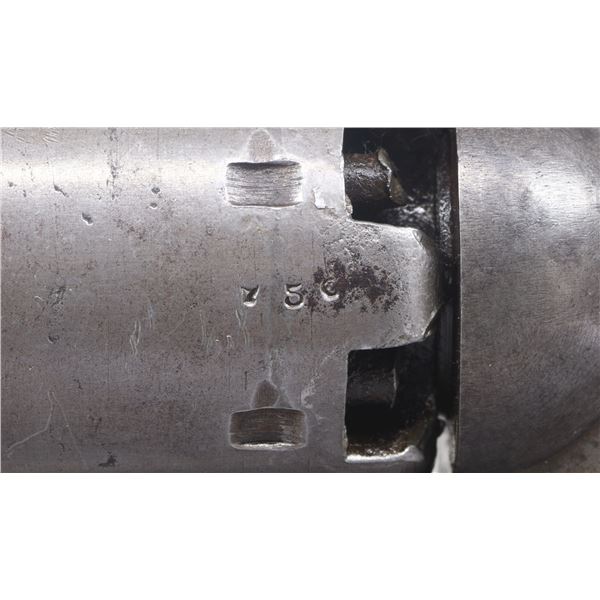 RIGDON CONFEDERATE REVOLVER. Cal. 36. S# 756. The firm of Leech & Rigdon, whose principal Thomas Leech made arms in Memphis,Tennessee as "Memphis Novelty Works". He was best known for manufacturing edged weapons but with the addition of Charles Rigdon, St. Louis gunsmith to the firm, revolvers were manufactured in 1862 in Columbus, Mississippi. The very 1st guns, were marked "Leech & Rigdon Novelty Works". Later production revolvers for only marked "Leech & Rigdon", and after government contract; "Leech & Rigdon CSA". This revolver is part of 1st government contract of which only about 450 revolvers completed by the firm. This is among the finest examples of these early government contracted revolvers in superior condition among survivors.