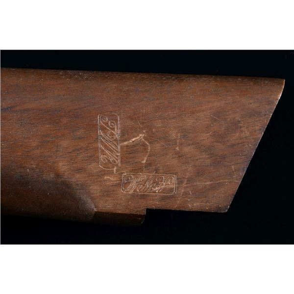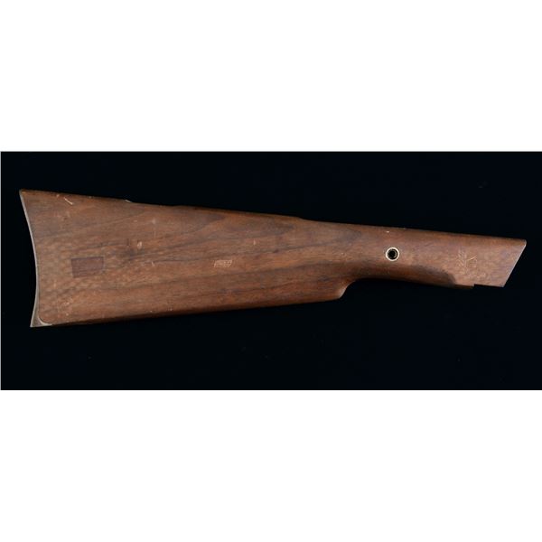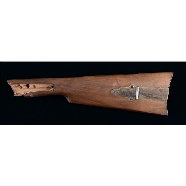 Walnut buttstock having overall length of 15.75". Buttstock has case colored carbine buttplate & patch box. Left side of buttstock has Civil War era stamped 3 cartouches. CONDITION: stock has very good overall appearance with scratches & marks. (02-23974/MD). $400-600.