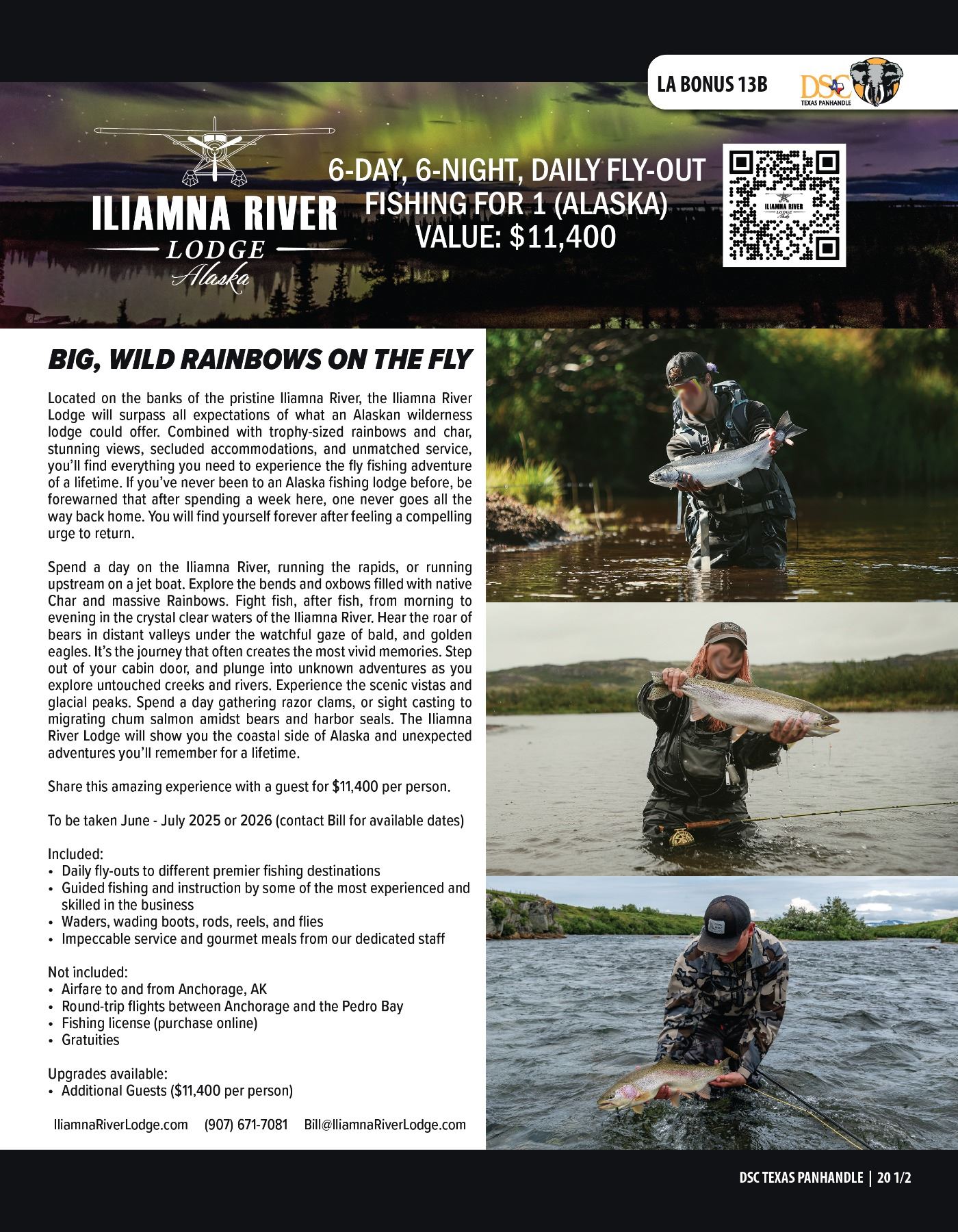 Lot 13bonus ALASKA FLY-OUT FISHING FOR 1 W/ ILIAMNA RIVER LODGE