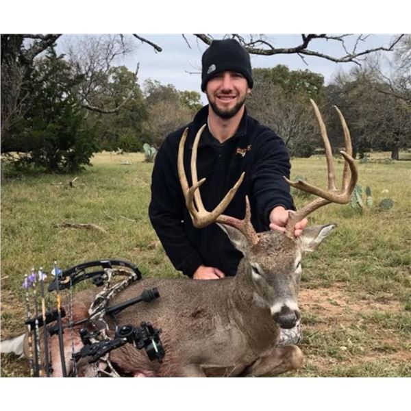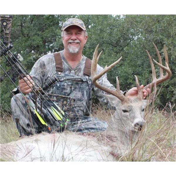 5 Day Texas Whitetail Archery Hunt with Barns Keith Ranch. This is a great chance to take 4 species during your time on the ranch. Hunt includes your choice of a trophy buck, 1 doe, 2 wild pigs and 1 Tom Rio Grande Turkey. Package includes lodging, meals, non-alcoholic drinks, guide service, photos and care of game. Hunter is responsible for license and transportation to/from camp. Hunt has to be taken October 1, 2025 - end of January 2026.