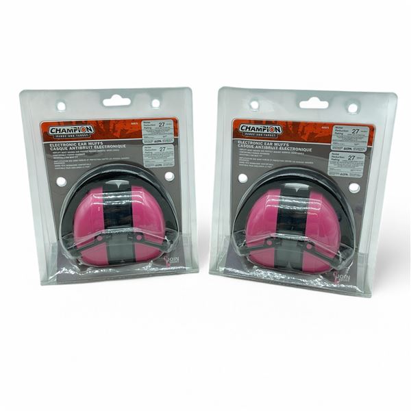 Champion Electronic Ear Muffs, Pink with 27 dB NRR 2 Qty