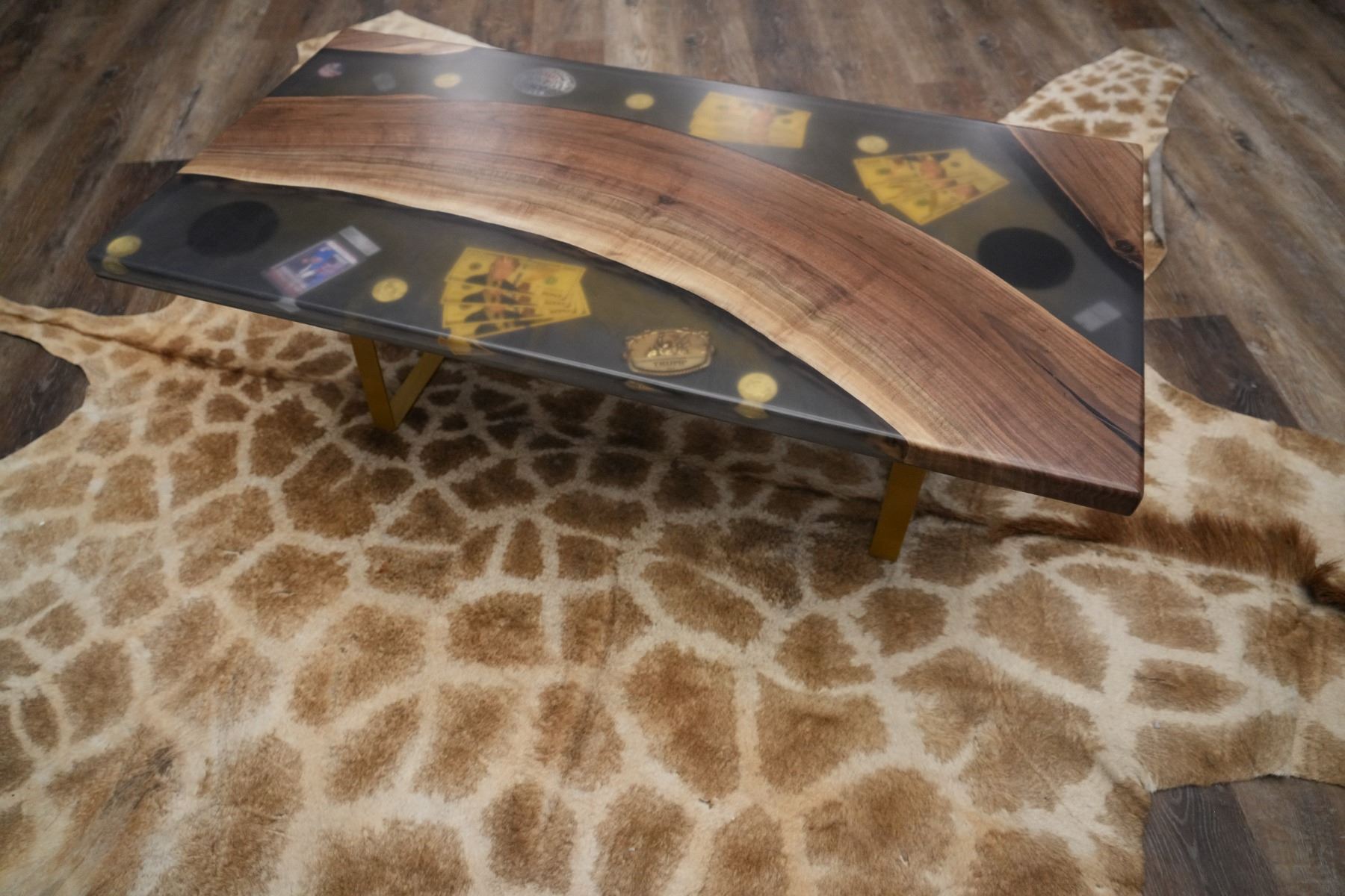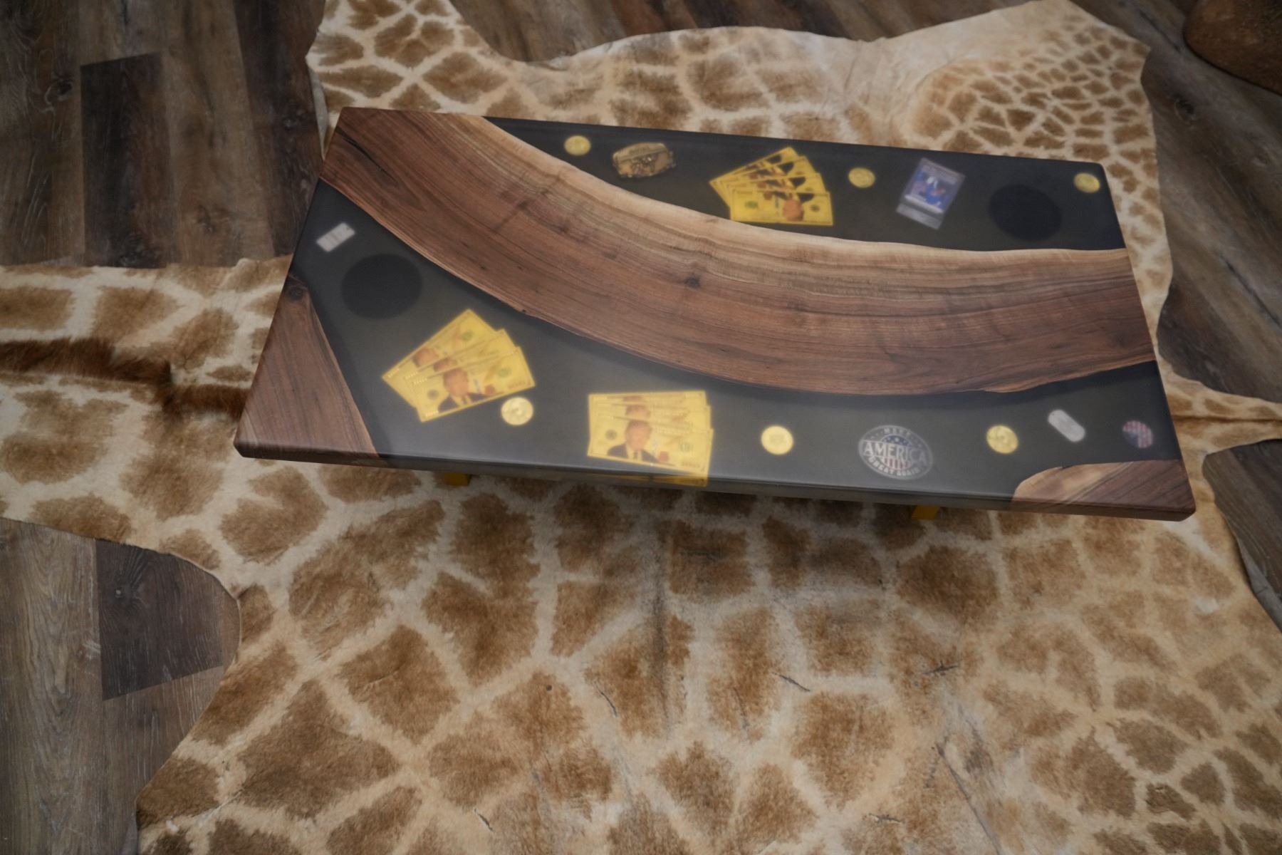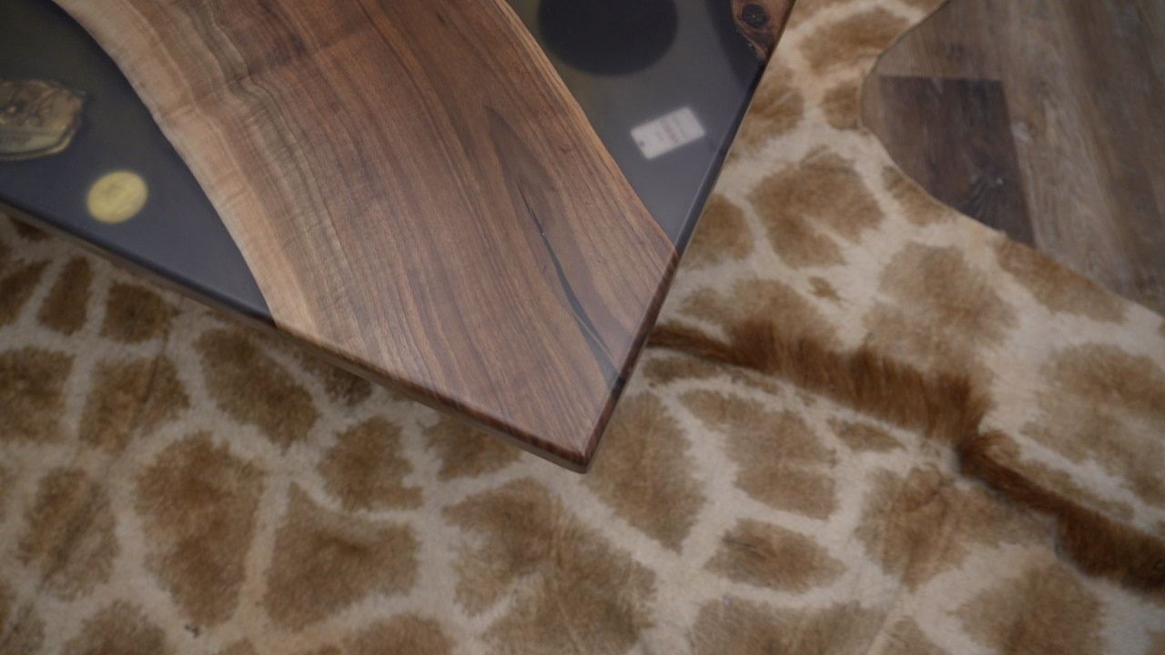 One-of-a-Kind Live Edge Walnut & Resin Trump Table