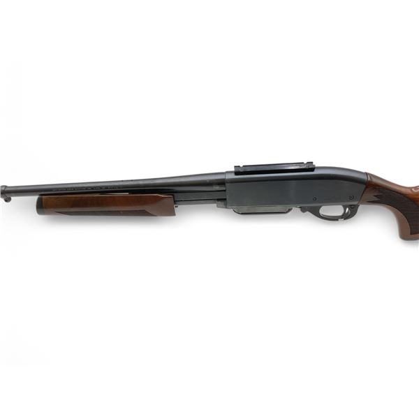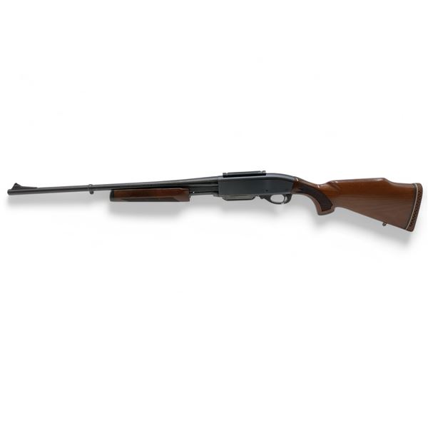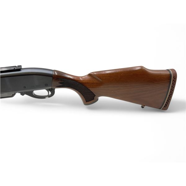 Remington 7600 Pump Action Rifle 308 Win 22" Barrel Wood Stock. Comes with one detachable magazine. Fixed front sight, no rear sight. Receiver drilled and tapped with rail installed. This is a non-restricted firearm.
