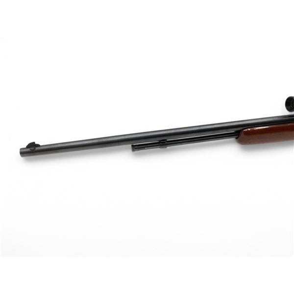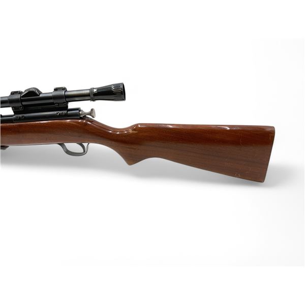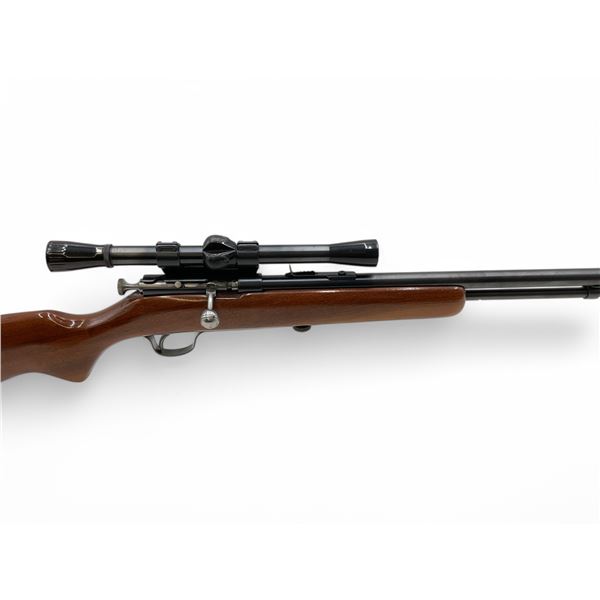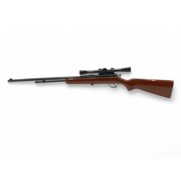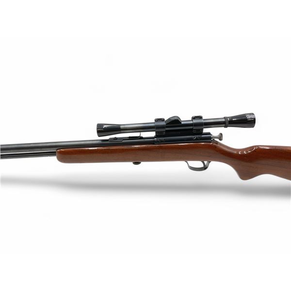 Cooey Model 60 Bolt Action Rifle 22S/L/LR 24" Barrel Wood Stock With Weaver C6 Scope. Tubular magazine. Fixed front sight, adjustable rear sight. Receiver drilled and tapped with mount installed. This is a non-restricted firearm.