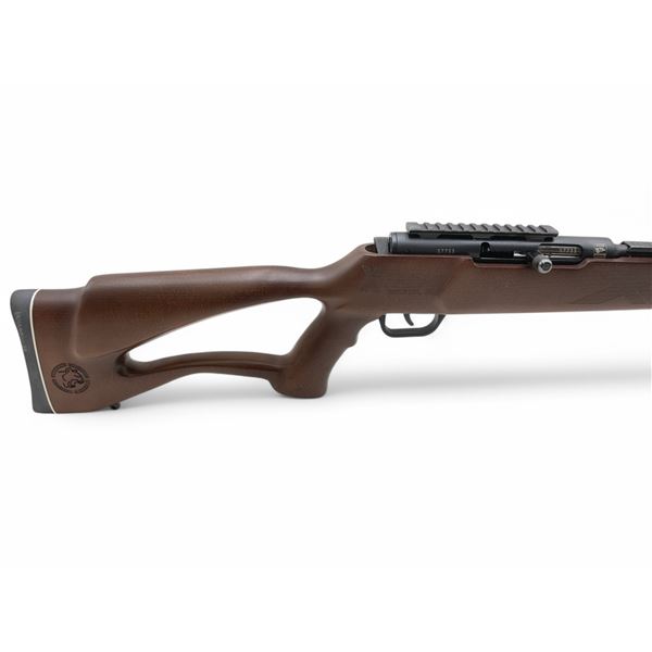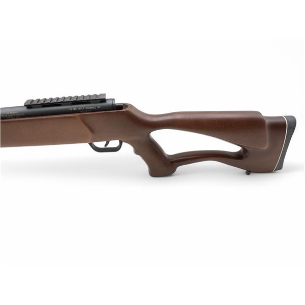 Mendoza Extreme Semi Auto Rifle 22LR 21" Barrel Wood Stock. Tubular magazine, rubber butt pad. Fixed front fiberoptic sight, adjustable fiberoptic rear sight. Extended charging handle; has rail installed on receiver. This is a non-restricted firearm.