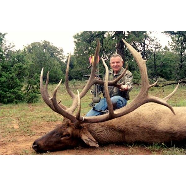 14 Day Trophy Velvet Elk hunt on the world-famous Acoma Pueblo of West-Central New Mexico with 1x1 guide. Tag will be used on the 500k acre Acoma Pueblo hunting lands. Dates are July 28th-August 10th, 2025 only. Archery only hunt in pursuit of the P&Y American Velvet Elk world record. Luxurious tent accommodations and full service meals provided. Hunting license, tag, field preparations, antlers and cape delivered to renowned taxidermist at no cost. Not included: gratuities, meat processing and taxidermy fees.