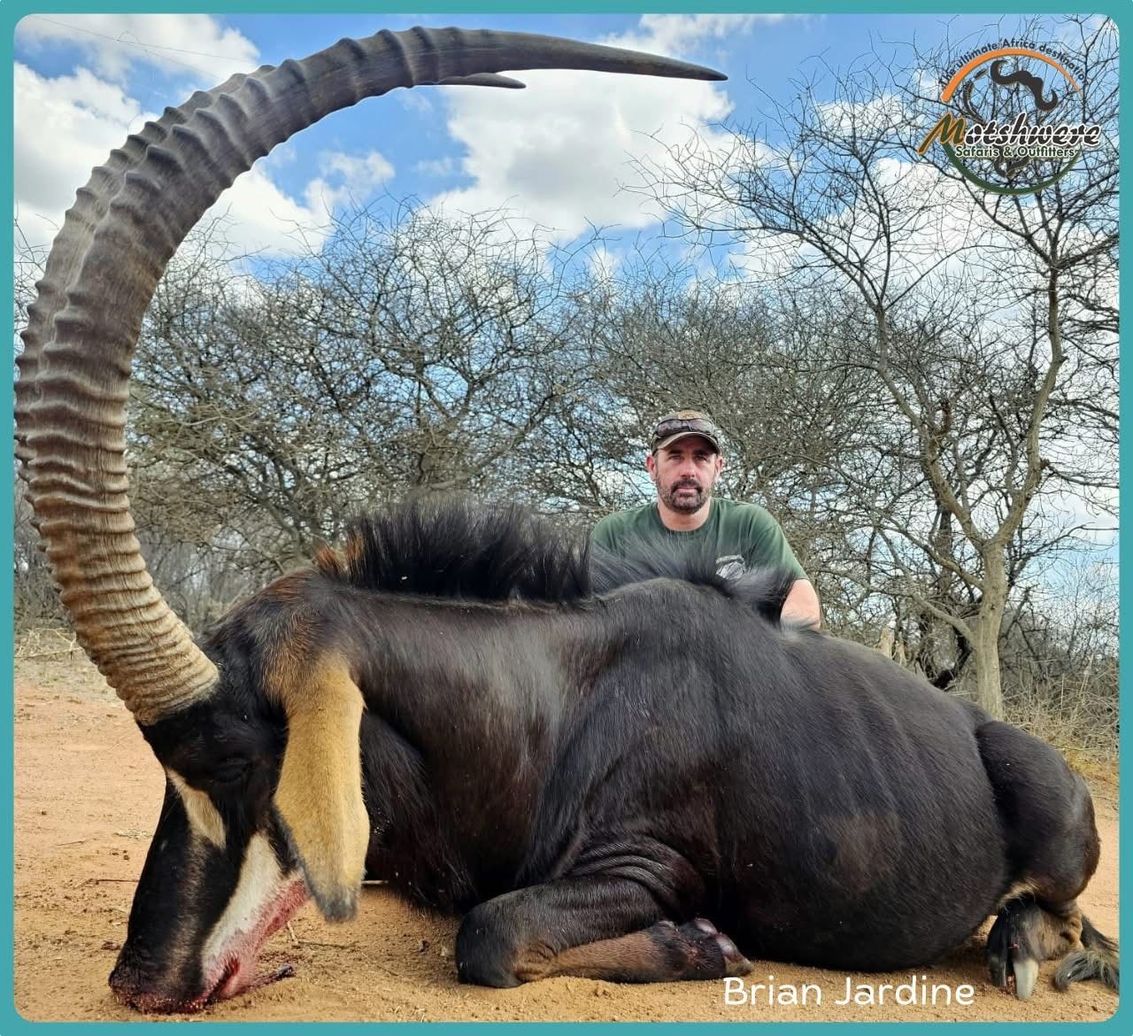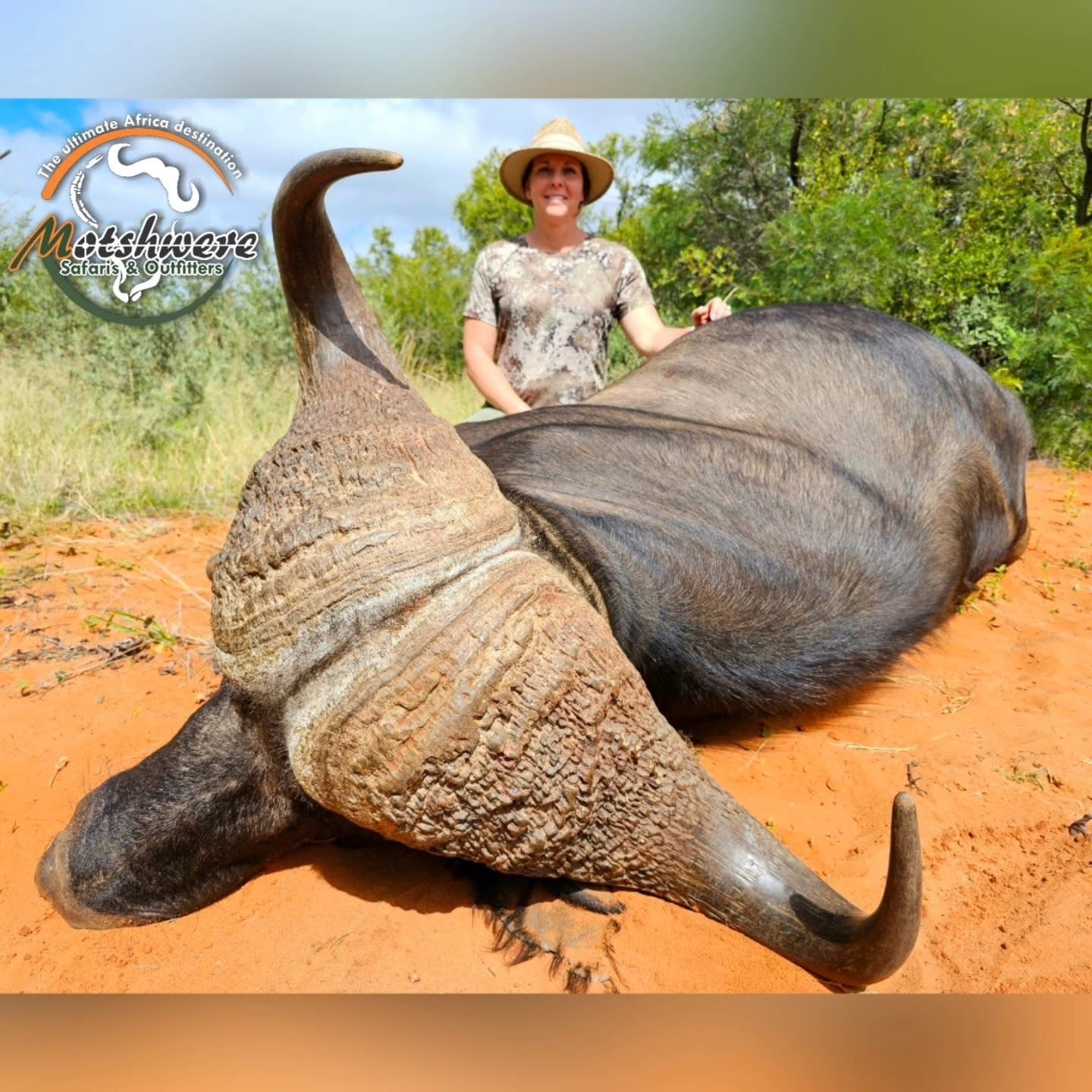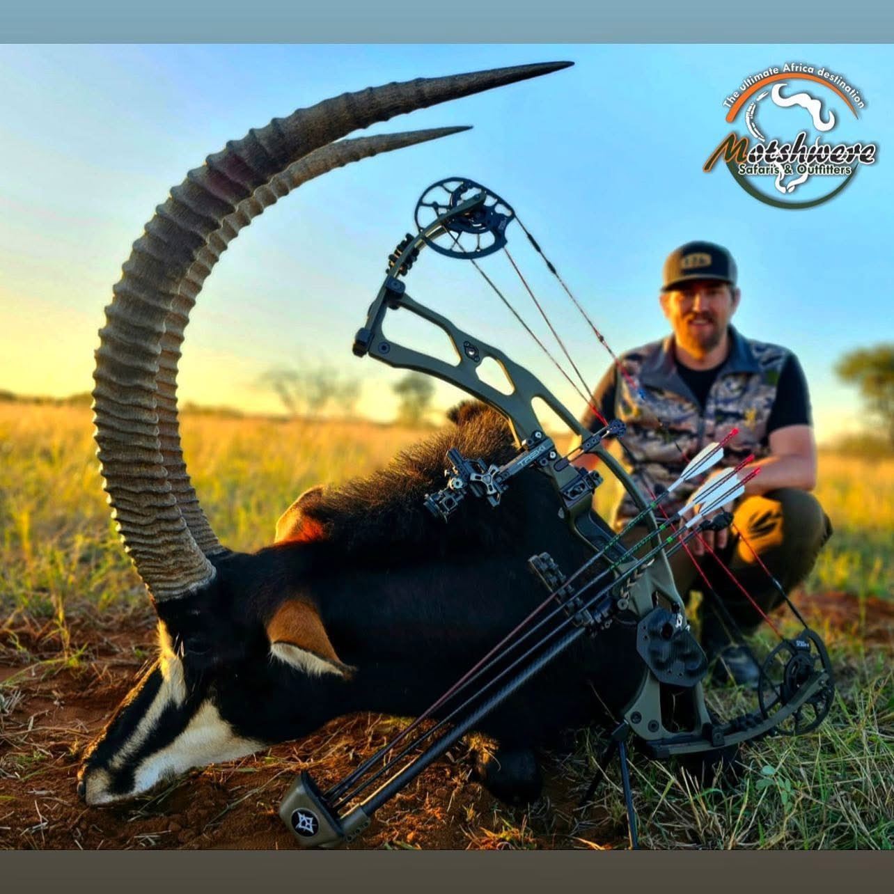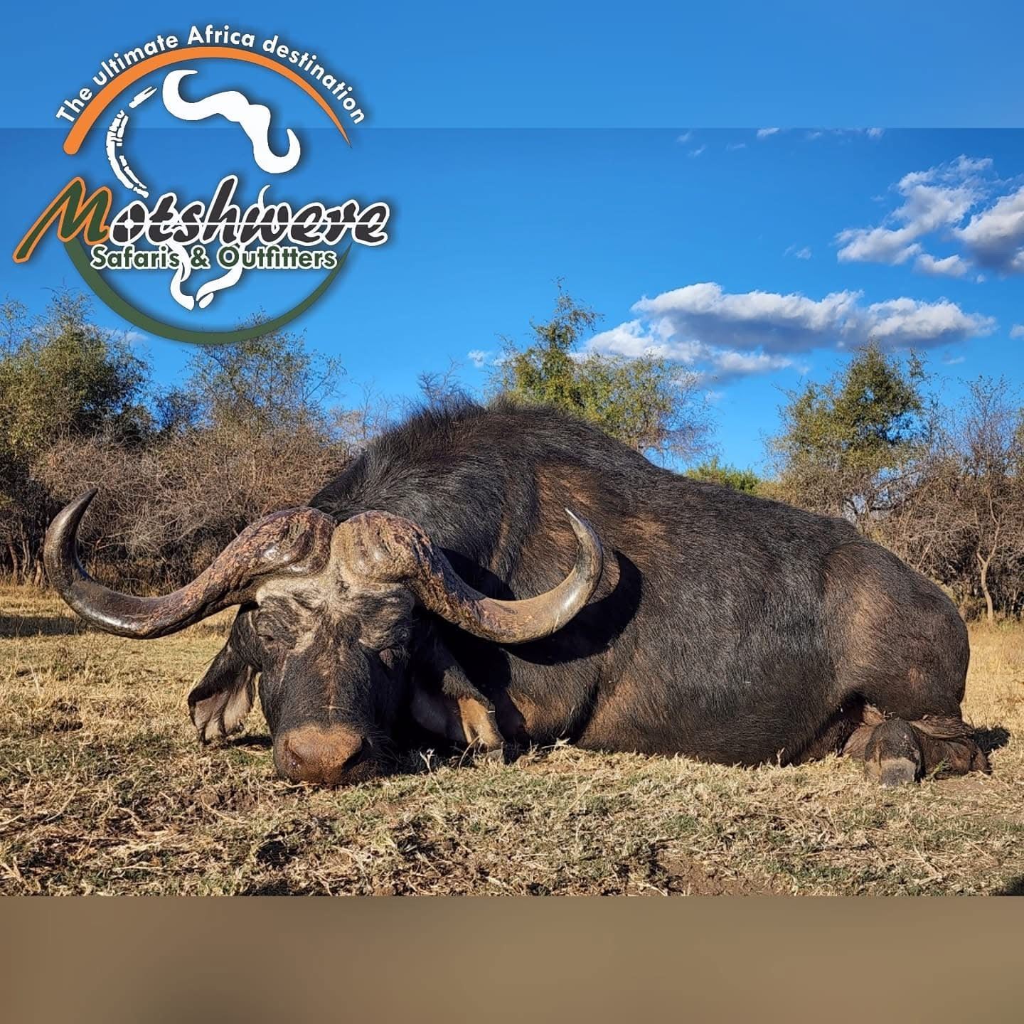 Motshwere: 10 Days South Africa Hunt for 2 Hunters. This package includes 2 hunters and 2 observers. Animals include 2 cape buffalo, 2 spotted Hyena, 2 sable (can be replaced with Kudu or Eland). Lodging and food are top rate. Included in the hunt are rooms with private baths, meals, daily laundry, airport pickup and drop off, and caping/skinning of animals. The hunting techniques can vary based upon the preference of the hunter. It can range from walk and stalk to glassing and hunting from a blind with bow and arrow. Hunt can be taken in 2025 or 2026.