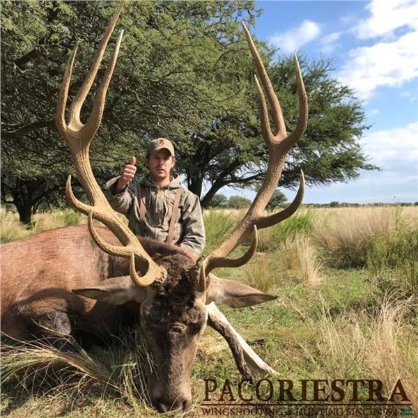 5-day 4-night Argentina Big Game Hunt at Paco Riestra's exclusive "El Durazno" FREE RANGE in San Luis Province. 100% real free range with 5000+ red stags and 600+ buffalos roaming free along 65,000 hectares. Accommodations include authentic Argentine hunting ranch lodging, all food and beverages. Hunter is responsible for license ($500), gun rental ($350), and airport transportation ($300 round trip from San Luis airport). Ammo not included. Flights not included.