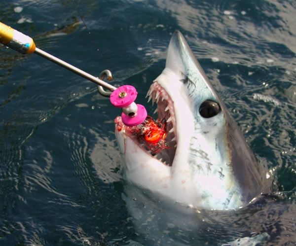 Capt. Conway Bowman is world-famous for his expertise in pursuing mako sharks on the fly. He has donated 2 full days (8 hours) fishing for up to 3 anglers. A San Diego native who fishes all over the world, he is the co-host of “The Outfitters“ and has appeared in numerous outdoor television shows and videos. He offers guided fly fishing trips for sharks in the San Diego area, and hosts travel trips to some of the best fishing areas in the world. Join him for an experience you won’t soon forget! If sight-casting a fly to large acrobatic game fish is your passion, then there’s no better target than the Shortfin Mako shark. The waters just a few miles off the San Diego coast hold one of the world’s largest seasonal populations of Makos. Ranging in size from 40 to 300 pounds, they migrate into these temperate, nutrient-rich waters beginning in April and are present until mid-November. It’s big game hunting in saltwater Fly fishing for Makos is like big game hunting. We are looking for opportunities to sight-cast a fly to a large predator, which takes time and patience. But the reward is unlike any other in saltwater fly fishing. The best way to attract larger Makos is by chumming with fresh tuna, then using the bait-and-switch technique often used when fly fishing for billfish. Imagine a large shark jumping 20 feet into the air after being hooked on a fly, then racing off to the horizon at 40 MPH! That’s what you can expect when fly fishing for San Diego Makos. There is no other fish in the sea that compares to the Mako shark in jumping ability, strength, and speed. They are truly one of the ocean’s greatest gamefish! Join us in pursuit of Makos! (April – November) Find out for yourself why fly fisherman from around the world come to San Diego to catch this great gamefish! This is strictly catch and release fishing.