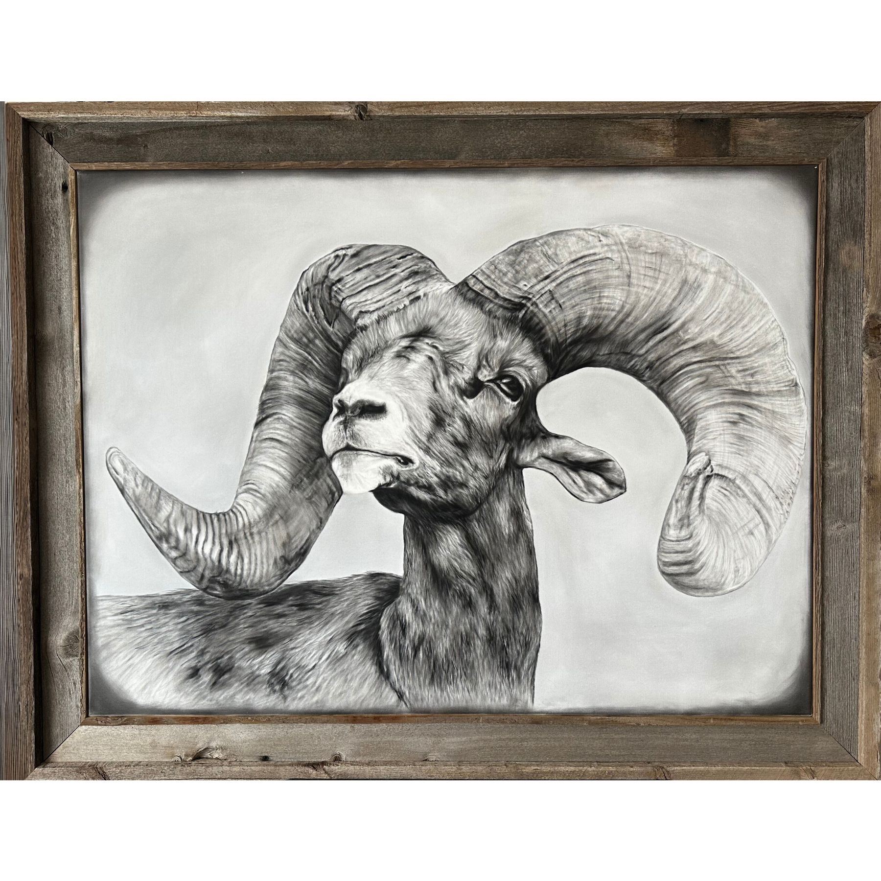 Elena Johnson is creating a 30x40 original charcoal drawing on canvas of one of California's most famous desert bighorn rams. This drawing is being created expressly for our fundraiser so that you can own a piece of history!