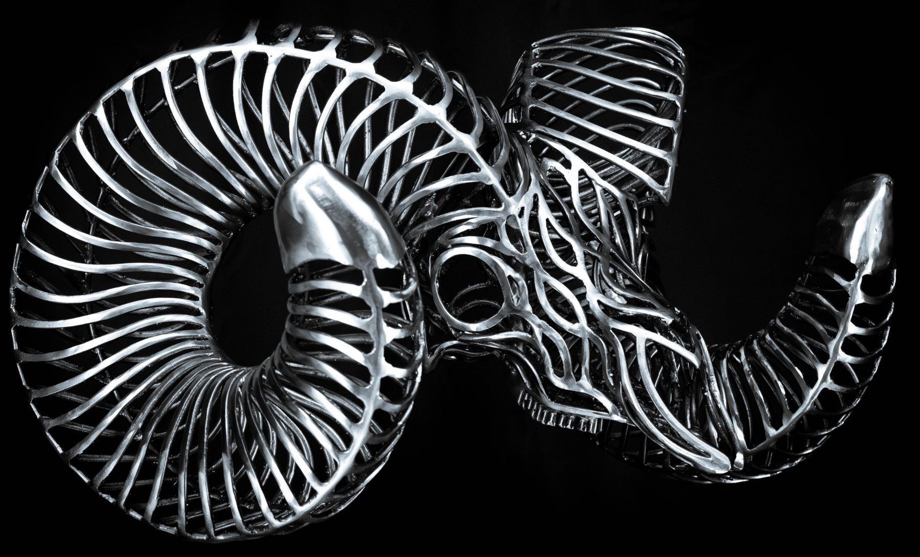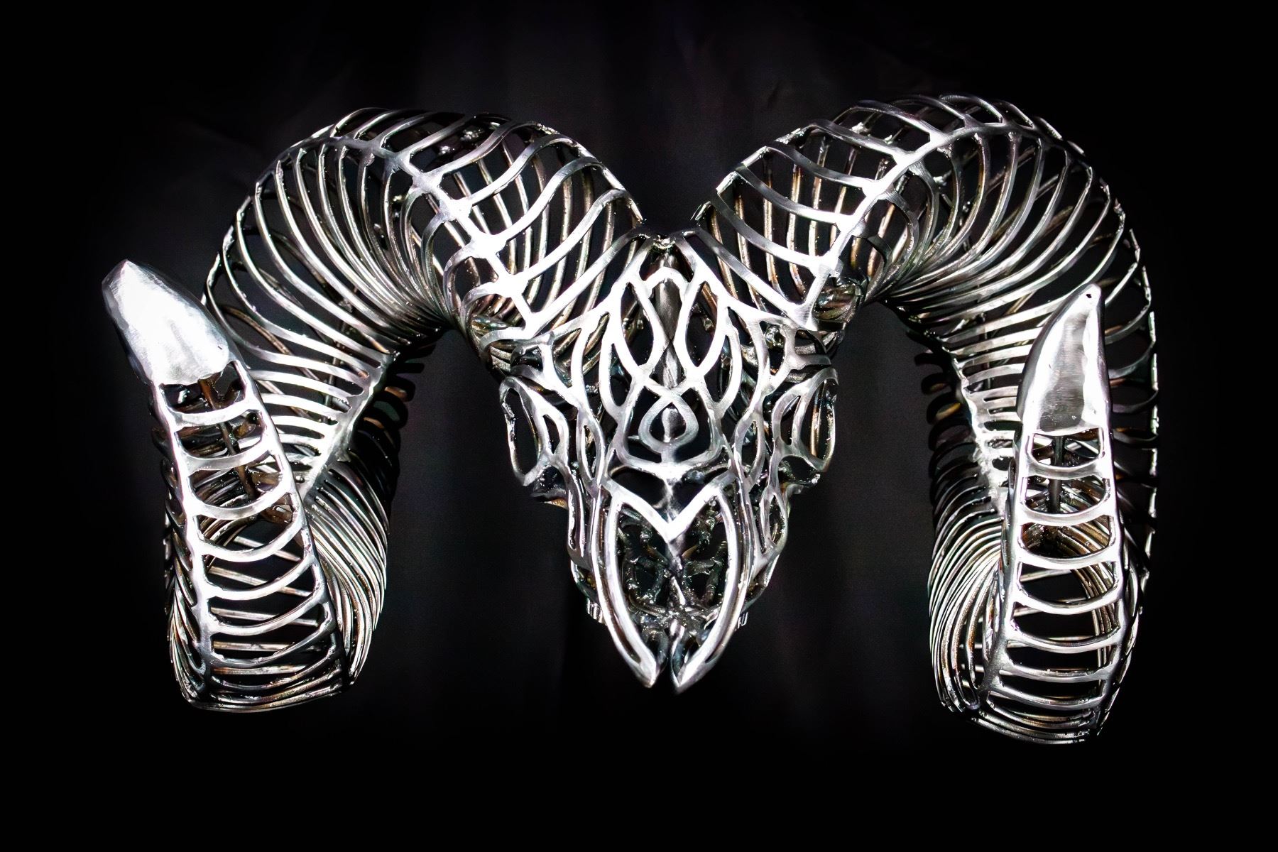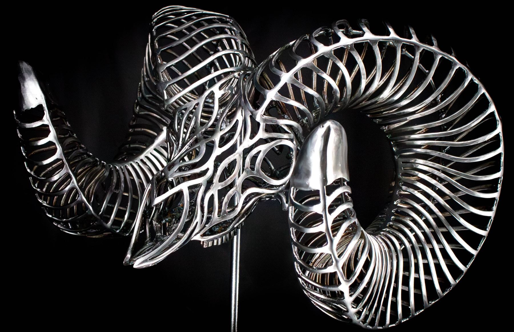 The most unique piece of art your will ever own. This beautiful bighorn sheep skull is made of solid metal rods! This very special piece by artist Russ Ellsworth has been made just for California Wild Sheep Foundation. Thank you Russ!
