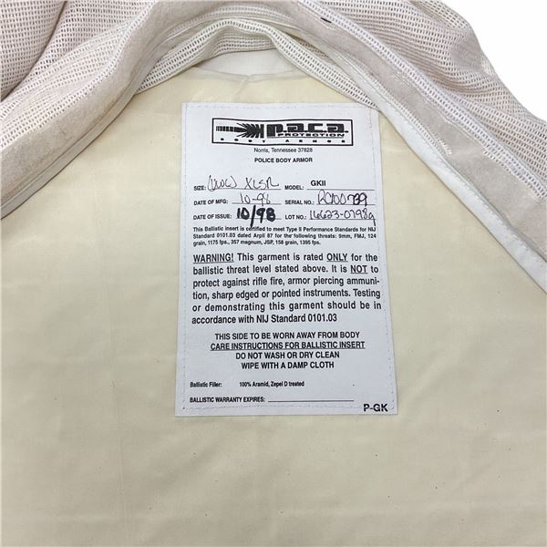 Paca Protection Body Armor Plate Carrier, Model GKII Size XLSR with Type II Plates