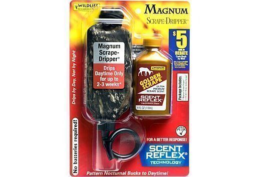 Combo includes a Magnum Scrape-Dripper® and 4 FL OZ bottle of Golden Scrape® scent with break-through Scent Reflex® Technology.