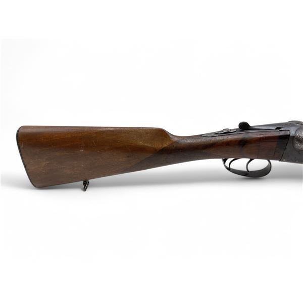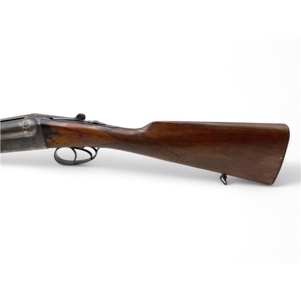 Unknown Belgian Side By Side Shotgun 16Ga 28" Barrels Wood Stock. Wood forend and rear stock are cracked. Bead sight; fixed chokes. Double triggers. This is a non-restricted firearm.