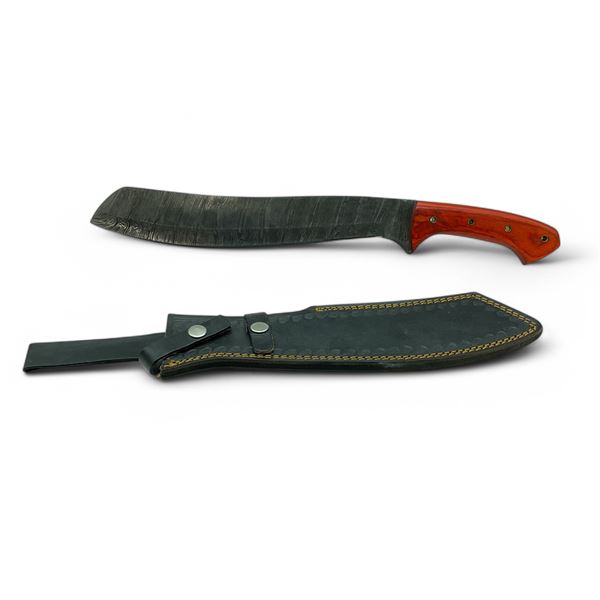 Hand Forged Damascus Fixed 11.5" Blade Knife with Leather Sheath, New
