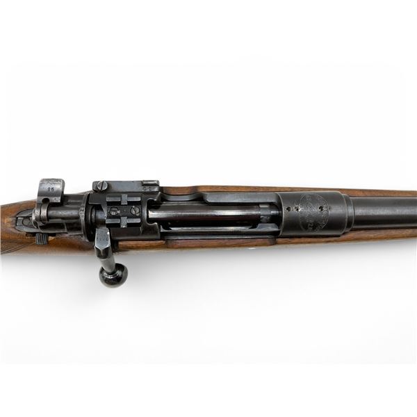Idealstudsaren Algen M98 Bolt Action Rifle 9.3X57 24" Barrel Wood Stock. Internal magazine with base plate. Ramp front sight, fixed rear sight. Receiver drilled and tapped with one base installed. Rubber butt pad in poor condition. This is a non-restricted firearm.